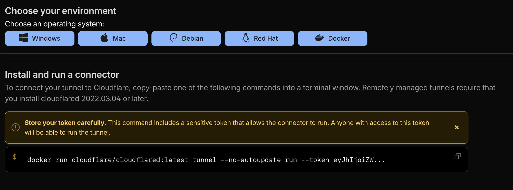 networks: {}Example Compose.yaml file. Remember to update {TUNNEL_TOKEN} with the token from earlier